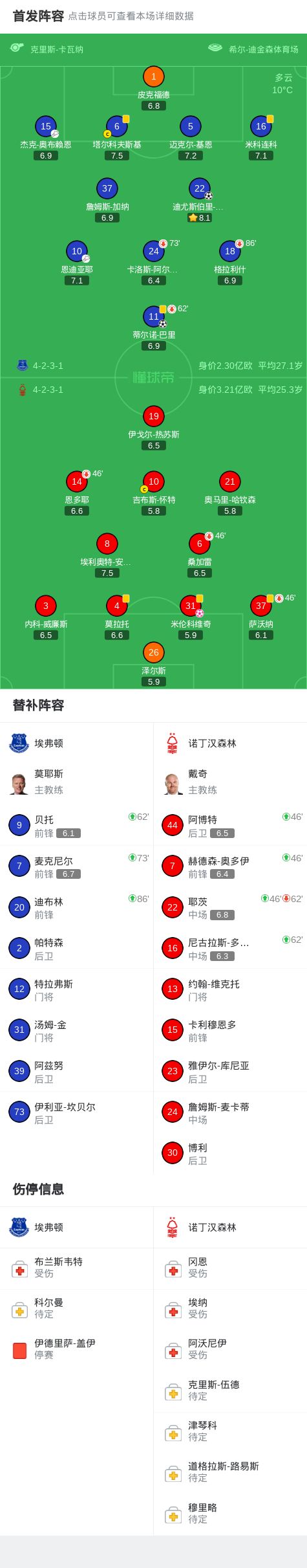埃弗顿3-0诺丁汉森林,霍尔破门+造米伦科维奇乌龙,巴里建功